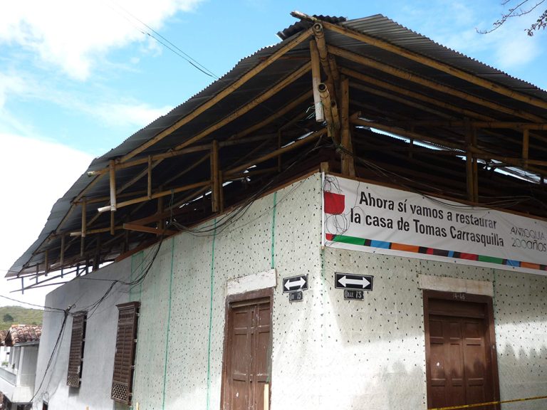 Casa construida a mediados del siglo XIX con estilo colonial y de características sencillas muy típicas de la vivienda de ese periodo de la arquitectura, está ubicada en la esquina nororiental del Parque Principal del Municipio y posee gran interés para todos los habitantes del pueblo y para los turistas que llegan a conocer la cuna del Costumbrismo Antioqueño, personificado en su habitante más ilustre, don Tomás Carrasquilla.